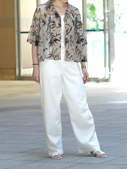 お色は、麻の節が残るナチュラルなホワイト。透け防止加工を施しており、インナーが透けにくいのも嬉しいポイント。