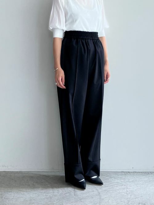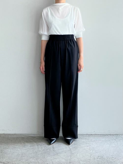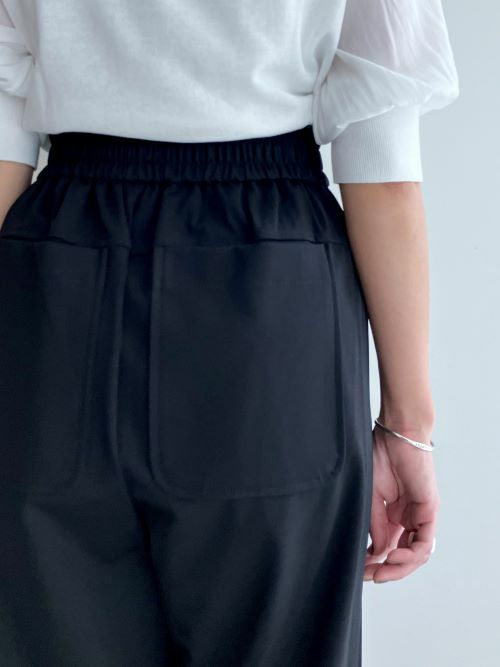 サステナブルなセルロース系合成繊維を使用したパンツ。ストレッチ性のあるジャージー素材でありながら、滑らかさと程よい光沢感を兼ね備えています。適度なハリ感もあるため、ラグジュアリーな雰囲気も◎。
