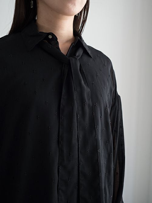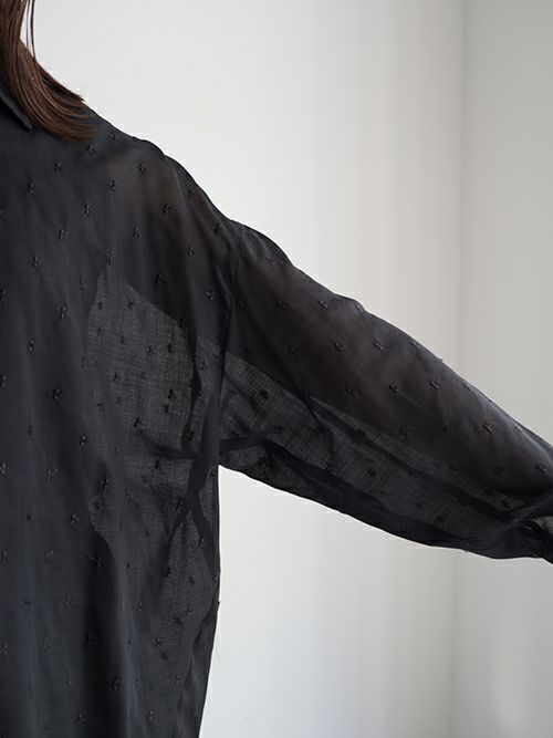 今年らしいシアー感が魅力的なシャツ。ドット刺繍がコーディネートのアクセントになり◎