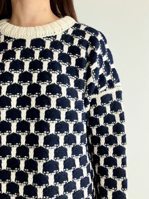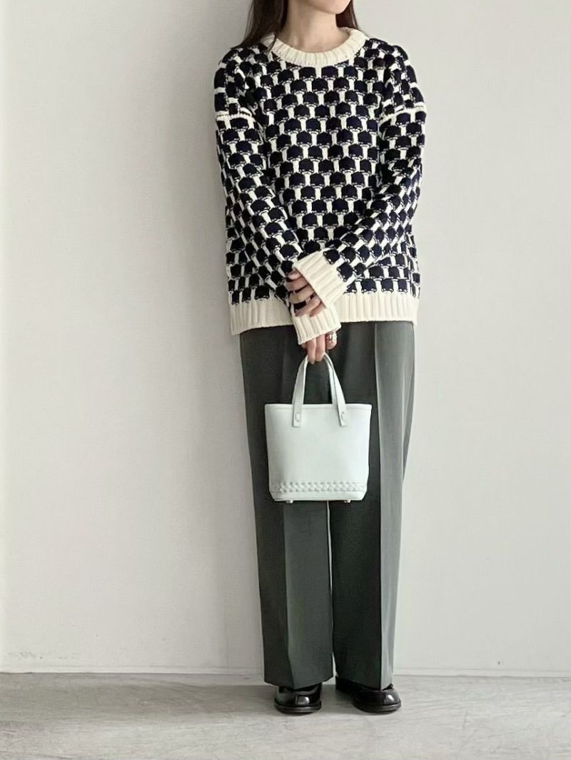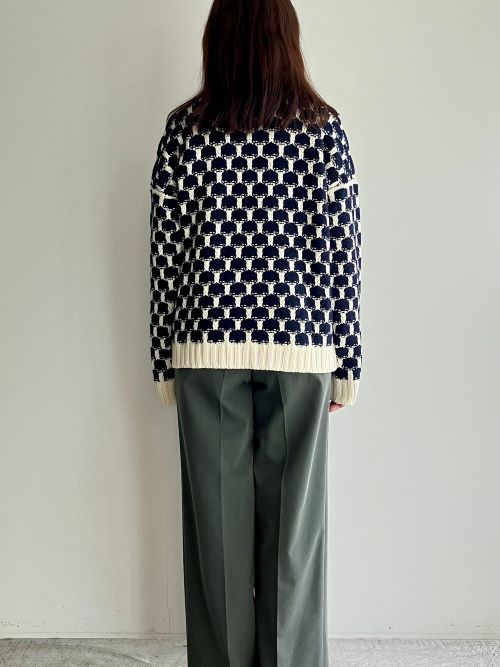 オーガニックウールを使用した立体的な格子柄ニット。目の詰まった格子柄編みのボックスラインでインナーにシャツなどを重ねてカラーもの少し差しても楽しめます。トラッドな雰囲気もありトレンドに左右されないアイテムでありながら、キャッチーで主役になるニットです。
