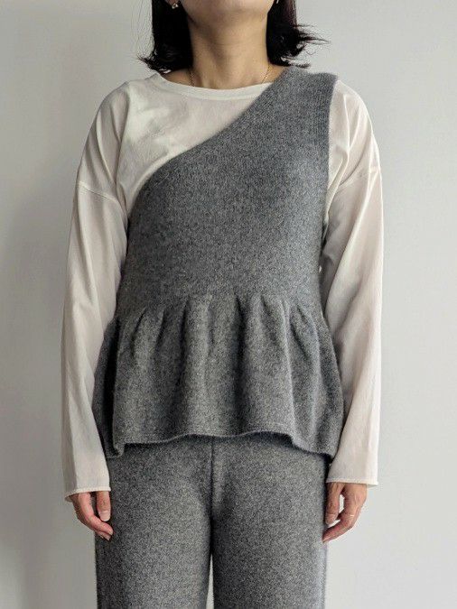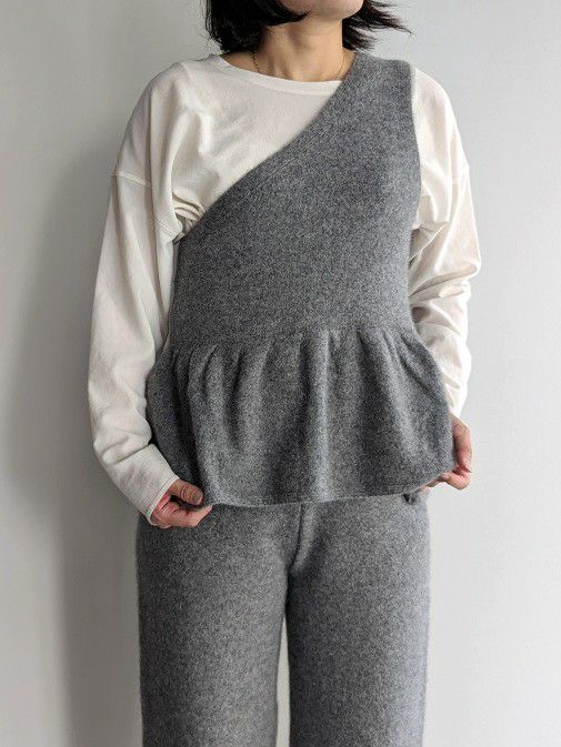 軽さと保温性に優れ、柔らかいタッチのチャイニーズラクーン混素材を使用。今季は定番のパンツに加え、重ね着スタイルに抜け感を演出するワンショルダーベストがリリースされました。季節の変わり目からコートのインナーまで長い期間使えるアイテムです。