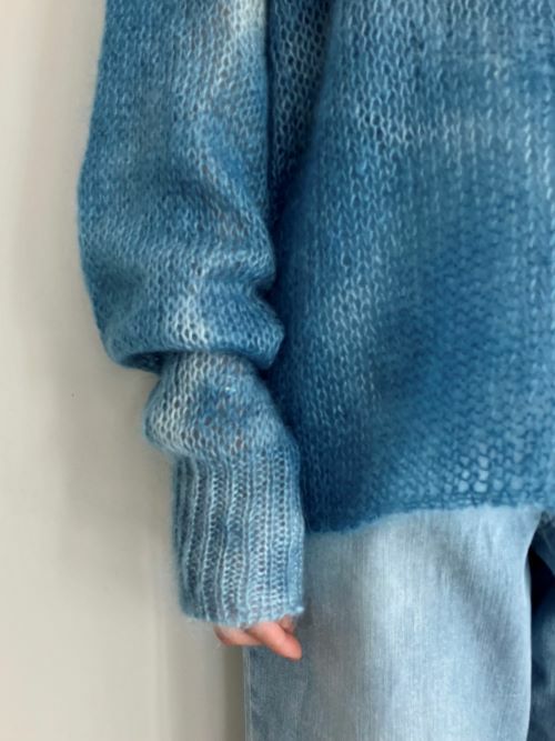シルクモへヤ素材のニットに沖縄の職人による手染めを施したニット 太番手で緩く編まれたオーバーサイズのプルオーバーに、沖縄特有の植物 (福木)からの染料や、インディゴを用いて手で丁寧に染めています。 柔らかい自然の雰囲気を感じる仕上がりです。
