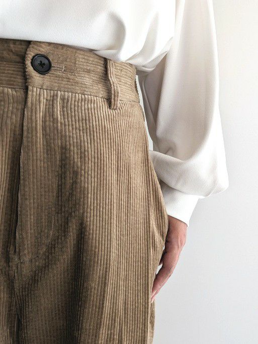 光沢感のあるクラッシックなムード漂うコーデュロイを使用。しなやかさと軽さが特徴の新コーデュロイ素材。