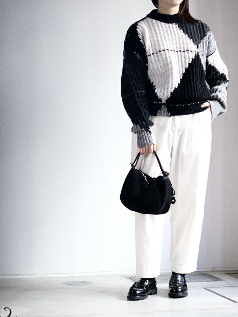 モデル①身長153cm/OFFWHITE 38サイズ着用、BLACK 36サイズ着用