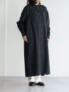 すっきりとしたシルエットのノーカラーワンピース。両胸のダブルポケットがアクセントになっています。一枚での着用はもちろん、前をあけて羽織としても活躍してくれる一着。