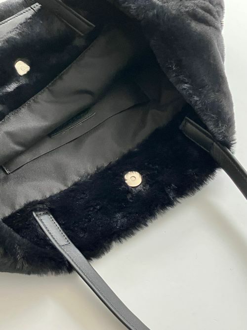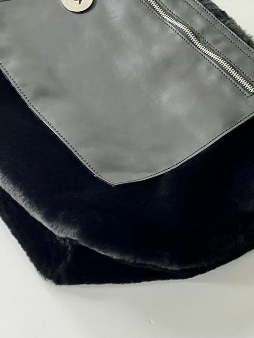 エコファーレザーコンビのアウトポケット付き。見た目以上に軽さとファーの柔らかさが触りたくなる持ち心地です。合わせるお洋服のカラーも選ばず、デイリーに活躍するアイテムです。ファー素材や、実用性を兼ねた大き目のアウトポケットがアクセントになり、毎日のスタイリングを彩ります。