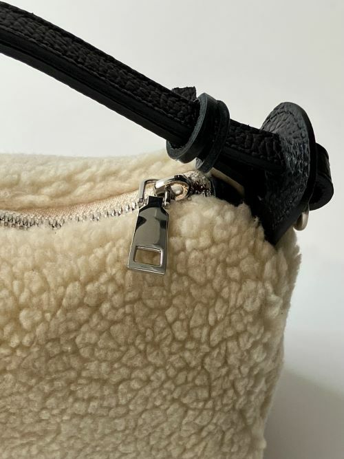 スタイルを選ばない小ぶりな巾着バッグ。持ち手を片側を引っ張ることで丸みが出てコンパクトな印象になります。また、ショルダーベルトが付属しますので、両手をあけたいご旅行などにも活躍しそうです。コンパクトなサイズながらマチがあり、見た目以上に収納力があるのも嬉しいポイント。合わせるお洋服のカラーも選ばず、ファー素材がシーズンのスタイリングのアクセントになります。