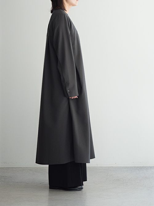 サラッとした肌触りが嬉しいAラインのワンピース。見た目はウール調で高級感のある素材です。袖もスッキリしており、さりげなく前後に入ったタックが立体感を生み出します。両サイドには秋冬らしいベロアテープをライン使いしており、横から見た時にもポイントになっています。ポリエステルなのでチクチク感もなく、シワになりにくいのもポイントです。