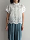 オリジナルレースは国内の産地にて生地に直接刺繍とカッティングの加工を施しているエンブロイダリーレース。程よいレーシー感が魅力的です。シンプルなボトムと合わせて、ブラウスを主役にした着こなしがおすすめです。