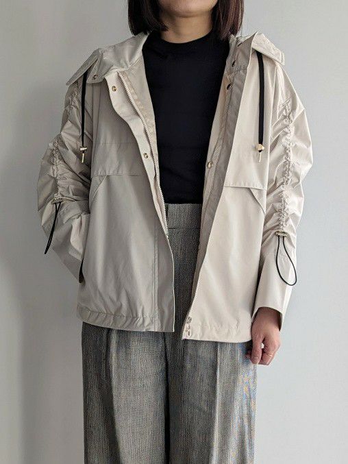 デザインのポイントは、袖のドロストディテール。袖丈を調節できるだけでなく、裾のドローコードを活用すれば、シルエットの変化も楽しめます。