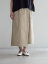 一枚のスカートに布を重ねた作りなので、安心して穿けるのがポイント。また、両サイドの大きなパッチポケットがワークな雰囲気をプラス。ミニマルと遊び心を備えた軽やかな一着に仕上げられています。ウエストゴム部分にドローコードが入っており微量な調節が可能です。