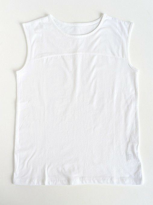 一枚での着用は勿論、インナーとして通年活躍する上質なノースリーブカットソー。綿にストレッチ素材をプラスした生地で透けにくいのも嬉しいポイントです。