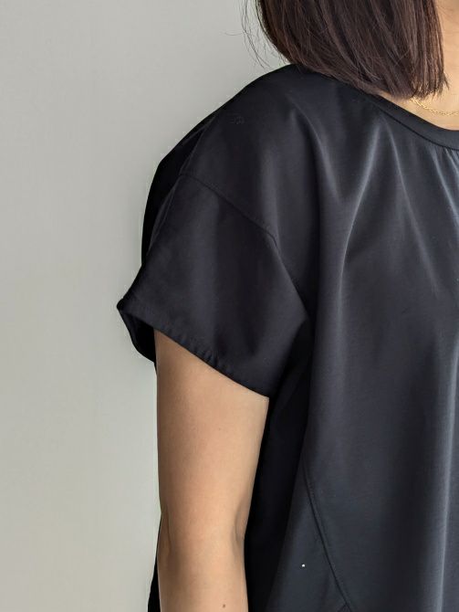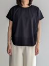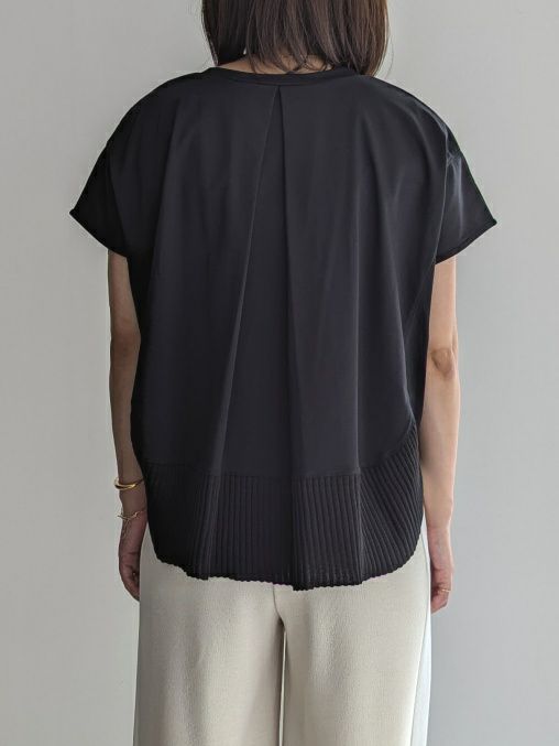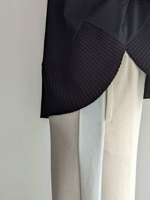 ハイゲージのキレイめなポンチ素材に、シャリ感のある綿ポリエステルの異素材を裾にドッキングした、丸みのあるフォルムが魅力のプルオーバー。1枚で主役になる存在感のあるアイテムです。