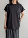 シワになりにくく上品な光沢と程よい肉感が特徴の万能アイテムです。ストレッチ性もあり、体のラインを拾いにくく、きれいめな印象を演出します。フレンチスリーブのデザインは肩に程よくかかり、気になる二の腕もさりげなくカバーしてくれます。