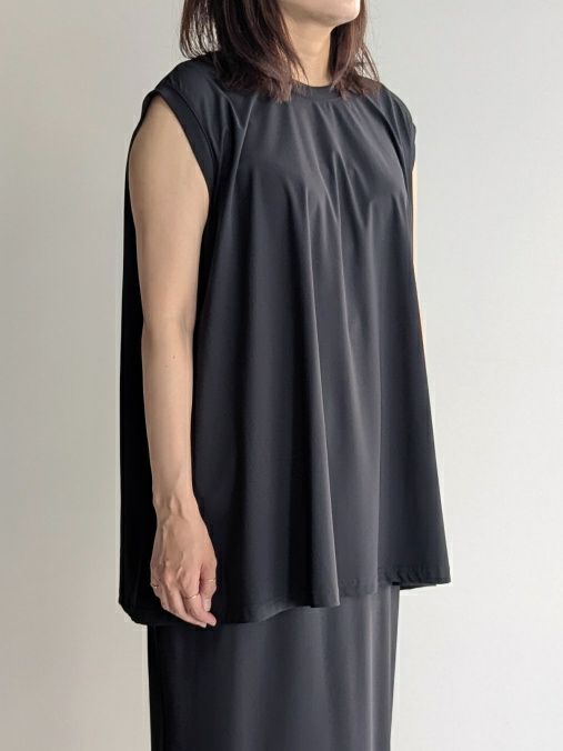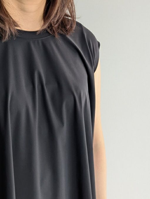 速乾性に優れ、さらりとした肌触りの素材で暑い季節にぴったりのノースリーブブラウスです。