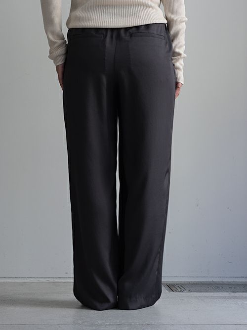 控えめなツヤ感と、軽く滑らかな肌触りが魅力のワイドパンツ。とろみ素材が生み出す美しいドレープが、動きにニュアンスを与えてくれます。ウエストはドローコード仕様で快適なはき心地ながら、上品な印象も叶えてくれる一着。華やかさときちんと感を兼ね備え、オンにもオフにも活躍する万能アイテムです。