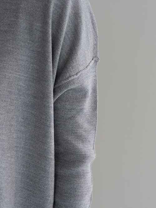 しっとりした肌触りのウール100%を使用したハイゲージのクルーネックニット。ドロップショルダーに加え、存在感のあるリブ袖がさり気なく個性を添えます。あえてリバースシームを施すことで、上品な素材感にカジュアルなエッセンスをプラス。抜け感のあるデザインに仕上げました。