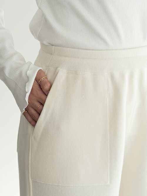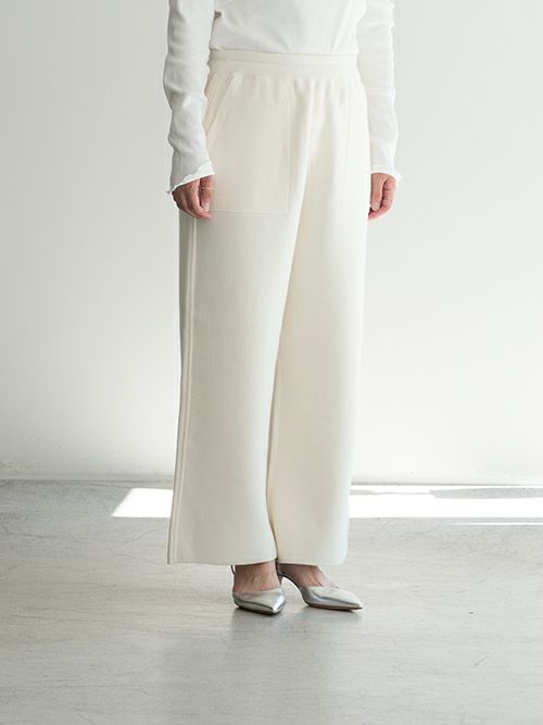 柔らかく、クリアでリッチな仕上がりが特徴の上質なメリノウール糸を使用したニットパンツです。ミラノリブの適度なハリ感としなやかさで美しく保たれたシルエットは、スッキリと見えるのに体のラインを拾いません。
