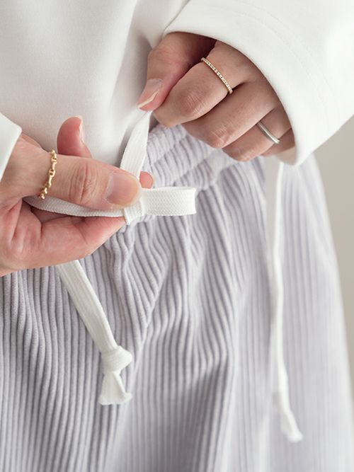 程よいストレッチが効いた快適な履き心地のコーデュロイワイドパンツ。ウエストはゴム仕様で内側にドローコード付き、さらに裾にもドローコードを配しており、シルエットの調整が可能です。スタイルに合わせて絞りを効かせれば、こなれた表情に。カジュアルな装いにリラックス感をプラスしてくれる、デイリーユースにぴったりの一本です。