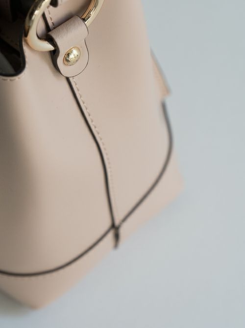 パネルミニバケツ型のフォルムで置いたときに自立するため、物の出し入れもしやすくミニサイズでありながら収納力もあります。2WAYショルダー付きでオンオフどちらも使いやすいです。