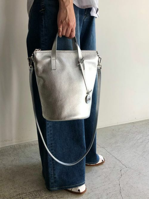 洗練されたデザインのシルバーメタリックハンドバッグです。ショルダーストラップがついており、デイリーから特別なシーンまで幅広く活躍するアイテムです。フロントのロゴチャームがアクセントとなり、シンプルながらも存在感のあるデザインです。