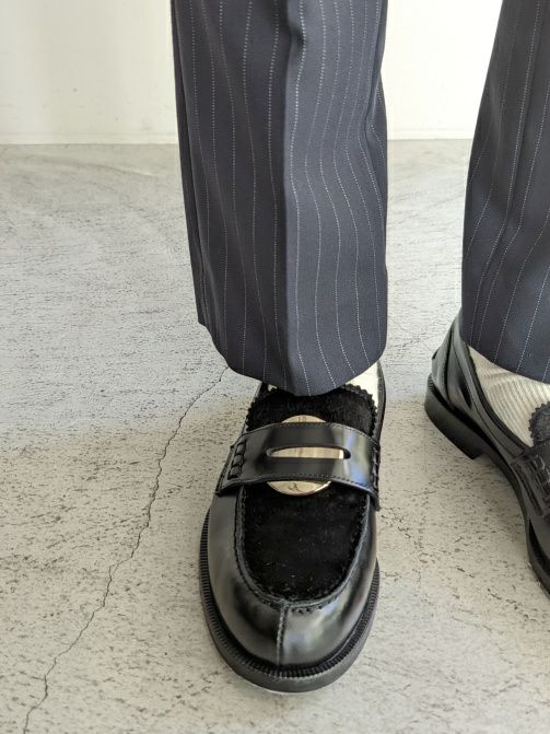 ヒップ下から膝上までに僅かなゆとりを持たせ、膝から裾にかけてすっきりとしたストレートラインに仕上げられたシルエットは、細見え&脚長効果があります。