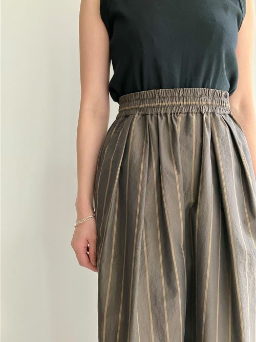2タックのワイドパンツをイージーに仕上げた一枚。裾に向けてすとんとストレートに落とした美しいシルエットが魅力です。ウエストはゴム