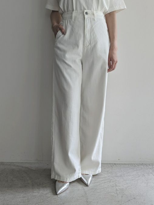 YANUKの夏の定番生地である綿麻を使用したワイドストレートパンツ。生地にレーヨンとポリウレタンを混ぜる事で、麻のチクチク感がなくなり快適で涼しく、そして伸縮性のある着用感です。