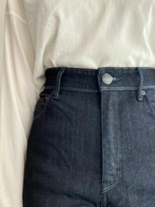 生地に再生繊維(セルロース)が入ったストレッチデニムです。ソフトな風合いの繊維が縦糸に入っており、履き心地がとても柔らか。ウエスト部分にもストレッチがきいているのも、とても魅力的な一着。