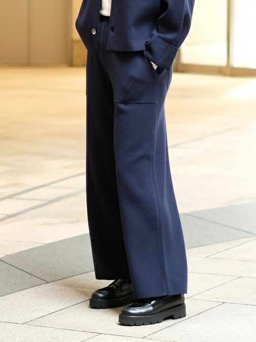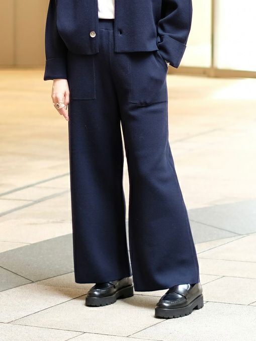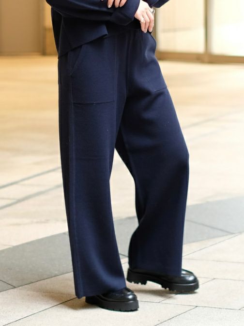 柔らかく、クリアでリッチな仕上がりが特徴の上質なメリノウール糸を使用したニットパンツです。ミラノリブの適度なハリ感としなやかさで美しくキープされたシルエットはスッキリとして体のラインを拾いません。一見きちんとした布帛のパンツの様な佇まいで、ひとたび履いてみるとニットならではの伸縮性とリラックスした履き心地の良さが嬉しい1枚です。繊維の細さも特徴で肌に優しく、吸湿性にも優れていて衣類内のムレを防ぎ不快感を軽減出来ます、さらに保湿性も高いため冷たい外気から身を守ってくれます。