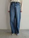 太腿から裾にかけて太いストレートシルエットのJOAN。メンズの太めジーンズを女性が履きこなすイメージです。ボリュームのあるパンツですが、ウエストがタイトで細く、華奢に見せてくれます。