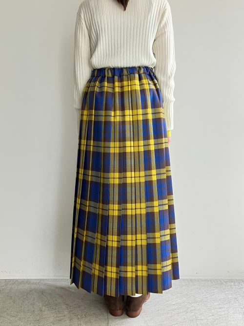 上質なキルト素材を使用したプリーツスカート。ウエスト全体がゴム仕様で、内側にドローコードが付いています。ウエスト幅を調整して頂けるのでトップスインのスタイルもきれいにキマります。身長問わず履きやすい着丈になっており、フラットシューズやブーツなど、足元も選ばずに楽しめるのも嬉しいポイント。ウエストはゴム仕様ですので多少の伸縮がございます。