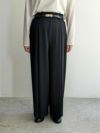 光沢があり、綺麗な落ち感も魅力的なワイドタックパンツ。