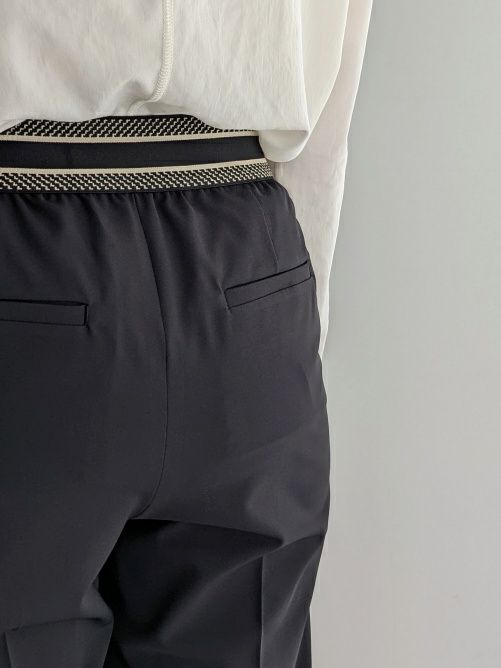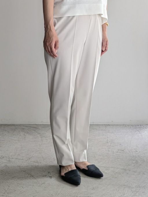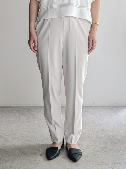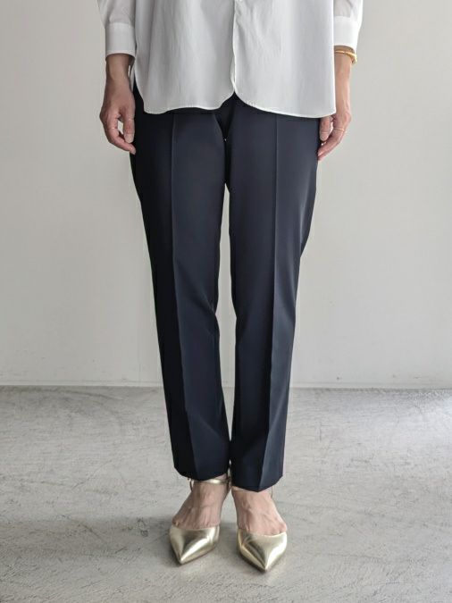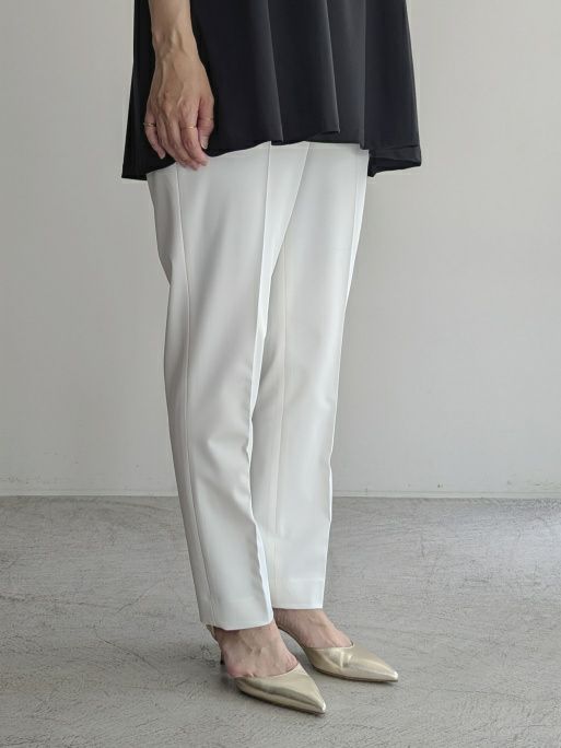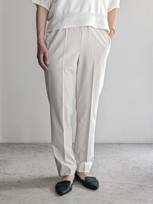 しなやかなストレッチ素材使用したテーパードパンツ。