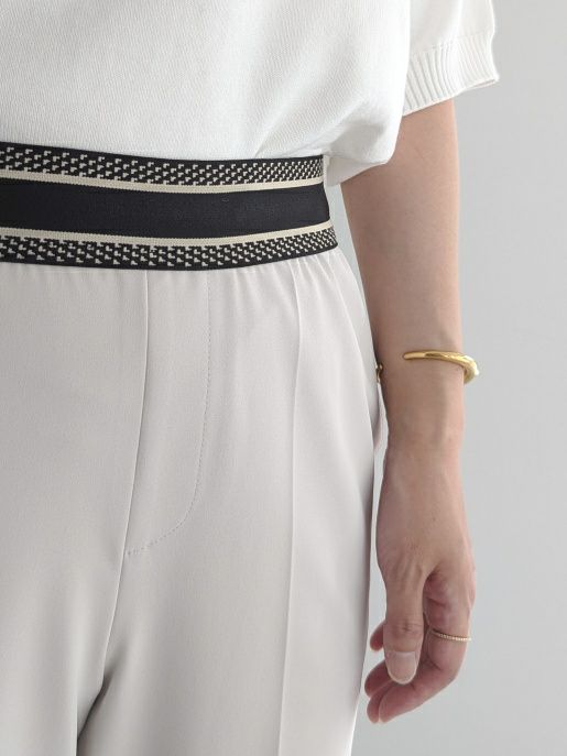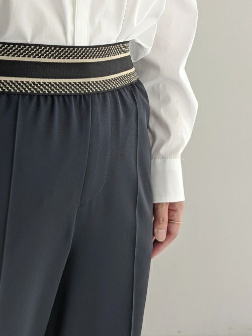 ウエストのボーダーベルトはフィット感がありながら、最小限のゆとりを保ちお腹・腰回りをすっきりと見せてくれます。