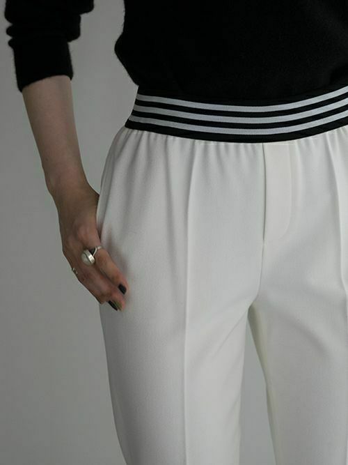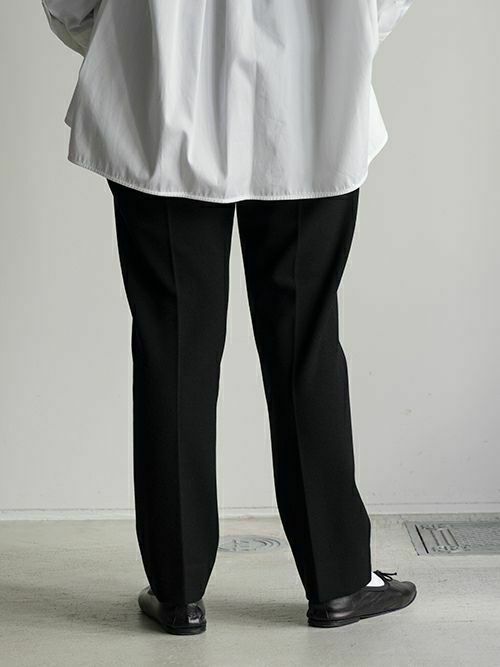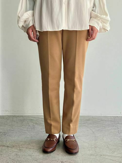 シンプルなブラウスやニットをインして、ジャケットを羽織れば、上品なオフィススタイルも叶う万能パンツです。