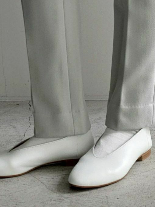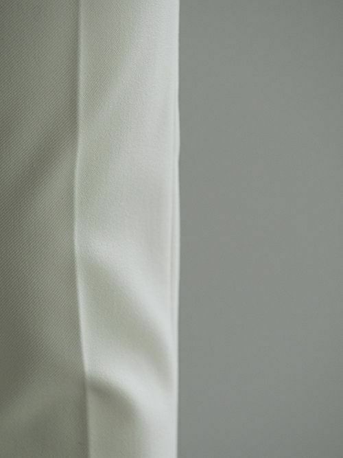 ヒップ下から膝上までに僅かなゆとりを持たせ、膝から裾にかけてすっきりとしたストレートラインに仕上げられたシルエットは細見え&脚長効果があります。