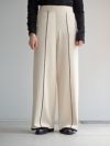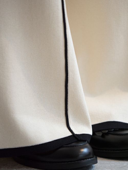 優れた伸縮性と、しなやかな落ち感を併せ持つニット素材を使用したワイドパンツ。パイピングにより施されたセンターラインが縦のラインを強調し、すっきりとした印象を演出します。ウエストは高めの位置に設定され、脚長効果も抜群。ニットならではの快適な穿き心地と、上品な見た目を兼ね備えています。カラーはシックなCHARCOAL GRAYと、柔らかな印象のIVORYの2色展開です。