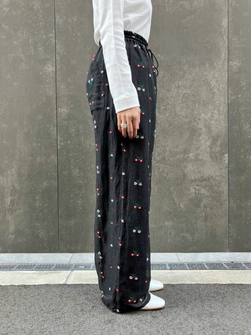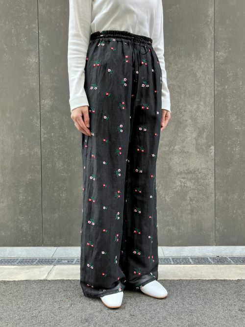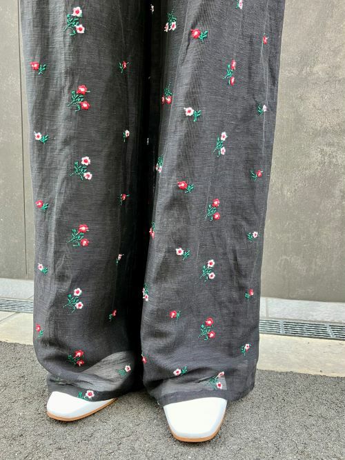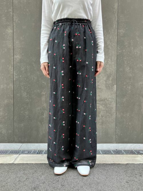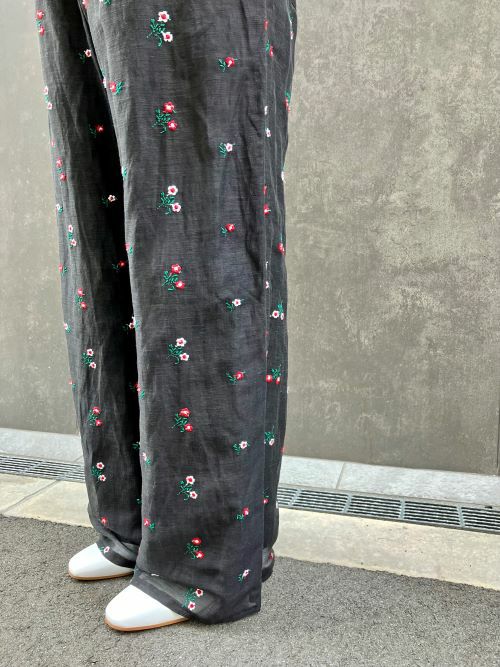 ティッカ フラワーエンブロイダリーパンツBLACK