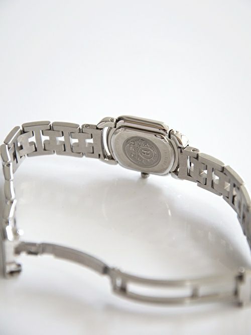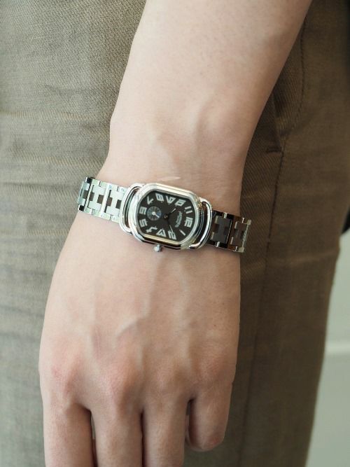 丸みを帯びたタテ長のケースはモータースポーツのラリーからデザインの着想を得たと言われており、レースで使用するトラックのような形をしています。エルメスのコレクションの中でもアイコン的な存在になっているラリー。ダイヤル上には個性的なアラビアインデックスが施されており、視認性にも優れ、スモールセコンド付きです。またブレスレットはエルメスの頭文字「H」が印象的でエルメスならではデザインとなっております。シルバーボディにホワイトダイヤルが上品な印象を与え、どんなファッションとも相性が良く、幅広いスタイリングにマッチします。