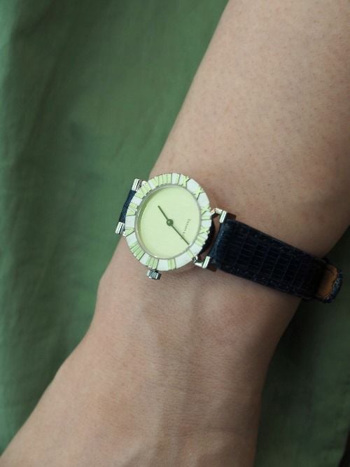 ケースと一体になったローマ数字がインデックスとして施され、文字盤はシンプルにブランドロゴだけあしらったデザインです。シンプルながら高級感あふれる仕上がりになっています。小ぶりなサイズ感とマットな質感がクラシカルで上品な印象を与えてくれます。