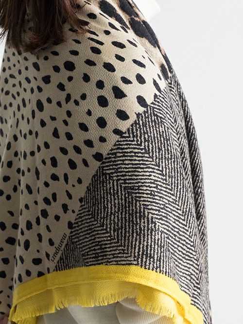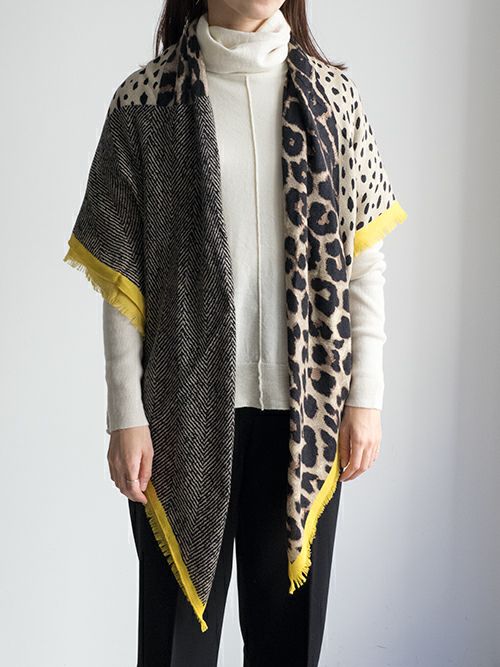 ヒョウ柄とチェック柄が今の季節にぴったりのスカーフ。イエローのラインがより一層華やかさをプラスしてくれます。