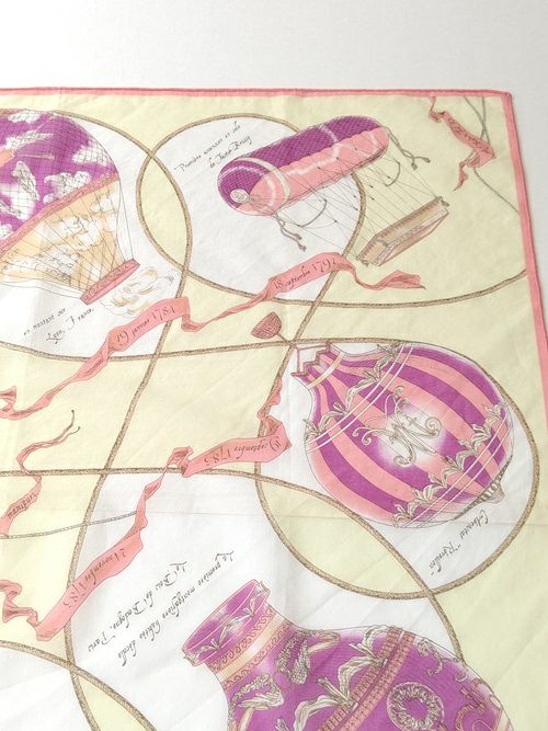 気球モチーフの柄がコーディネートのアクセントに。ブラウスやニットとの合わせや、バッグに巻くのもおすすめです。