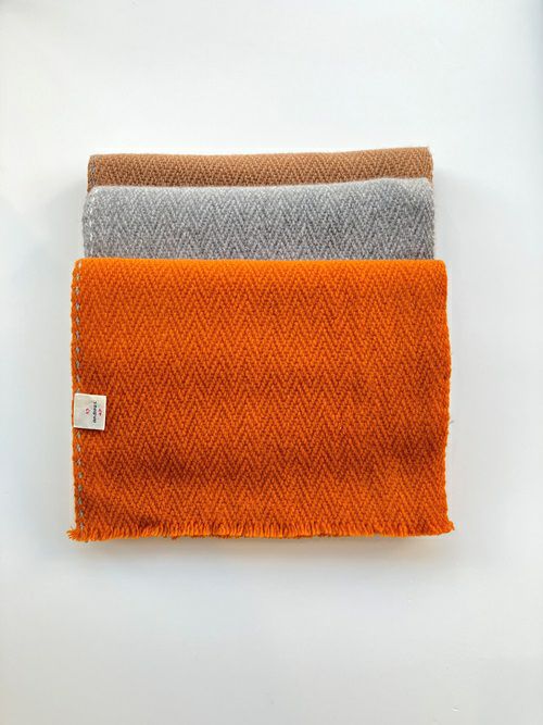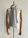 空気感のあるエアリーな質感が特徴的で、さり気ないサイドのカラーステッチがポイントになっています。カジュアルな配色でありながら、上品で高級感のある仕上がり。軽くて柔らかな肌触りが魅力的なストールです。