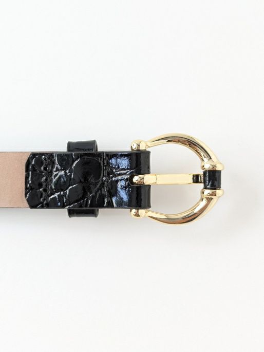 上品な艶とゴールドのバックルが上品な印象で、ジャンルを問わず幅広いスタイリングに取り入れやすいデザインです。