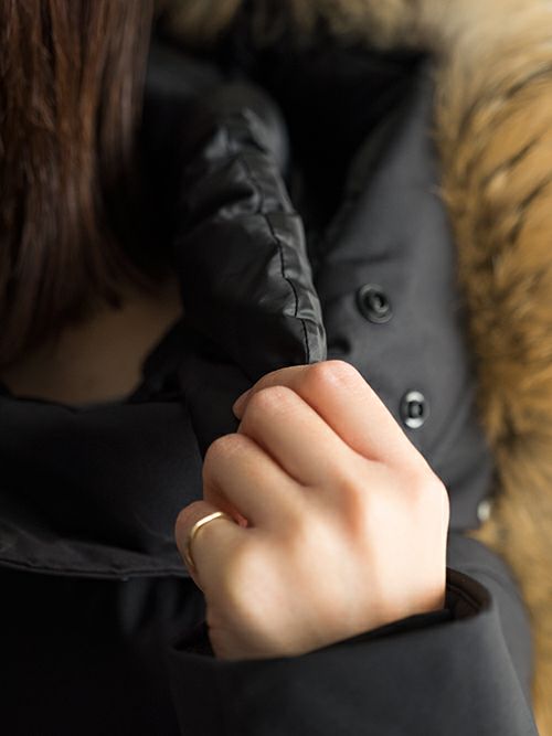 着膨れしにくい、程よくすっきりしたラインで着て頂けます。-25℃対応の防寒機能の本格派ダウン。ヒップが隠れるミドル丈なので、どんなボトムスともコーディネートして頂きやすいです。