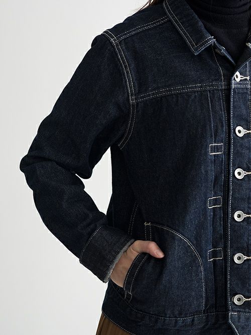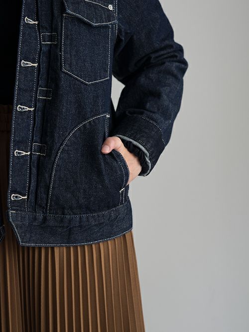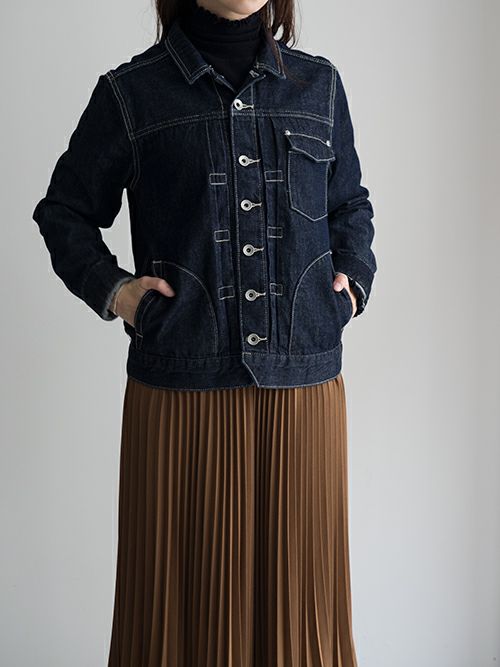 フロントのステッチや腰部分のタックなど、ありそうでない、さりげないデザインが光ります。自分らしい着こなしで楽しんでみて下さい。