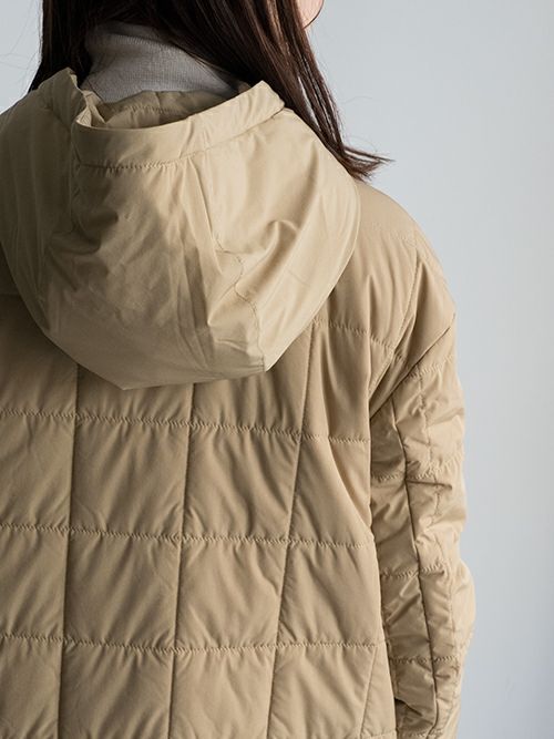 中綿はシンサレート素材を使用しており、薄くても暖かく着て頂けます。表面はストレッチ性のあるマットなナイロン地で、スポーティーな印象になり過ぎず、カジュアルからきれいめまで、幅広いアイテムとマッチします。