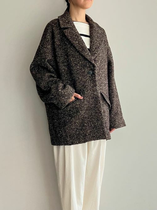 マニッシュな雰囲気なのでフェミニンなワンピースやスカートなどと合わせた着こなしもでき絶妙な丈感で身長やスタイリ ングを問わず活躍してくれる、デイリーアウターにぴったりのアイテムです。柔らかでエレガントな雰囲気もありながらさらりとシンプルにモードなイメージにもなり魅力な大人の上質な 一着です。