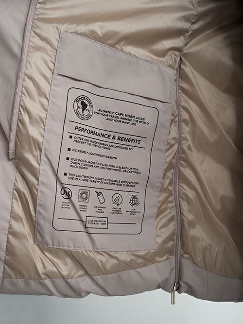800フィルパワーの高級ダウンを使用しており、非常に軽量でありながら高い保温性を有した一着です。